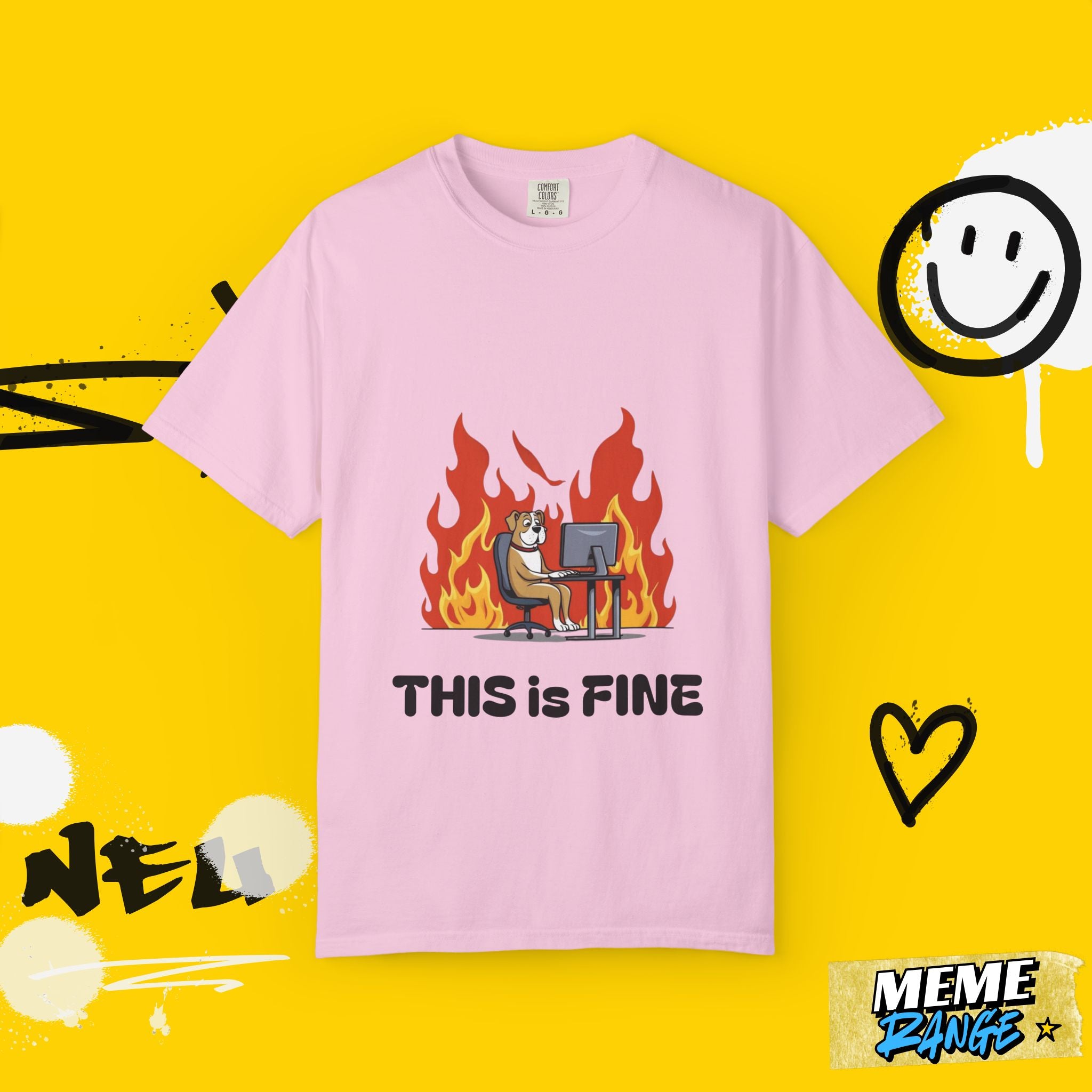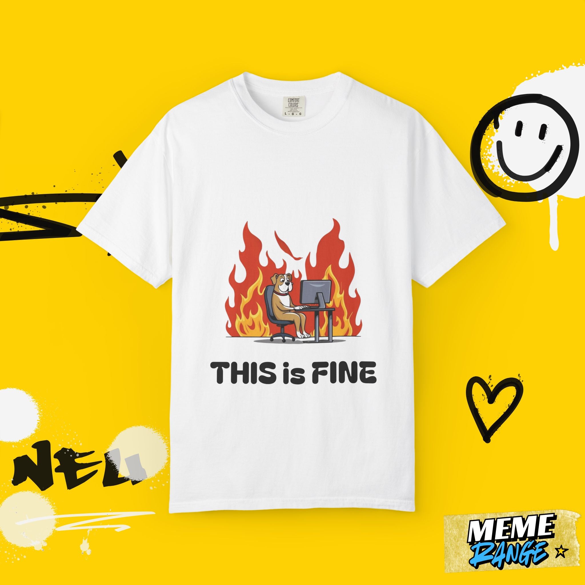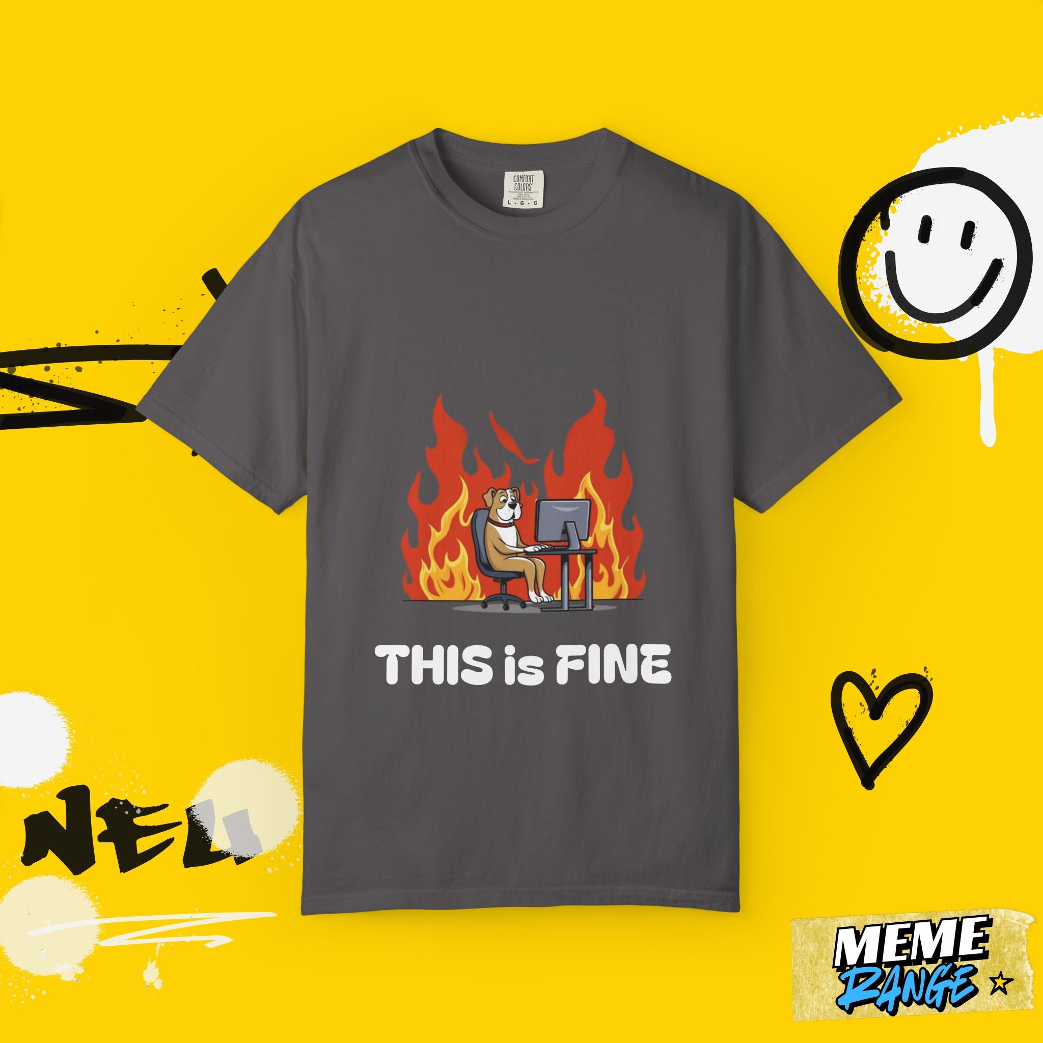 Funny Meme T-Shirt – 'This is Fine' Garment-Dyed Tee | Unisex Relaxed Fit Cotton Shirt