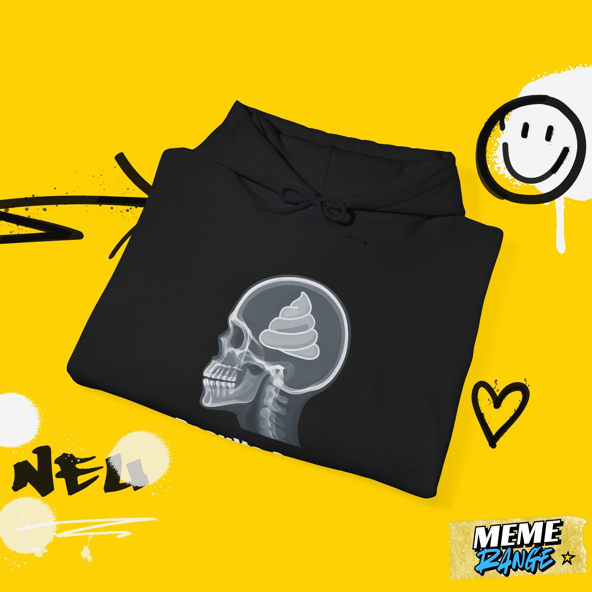 Skull & Poop Brain Hoodie – Unisex Heavy Blend™ Meme Sweatshirt (All Black)